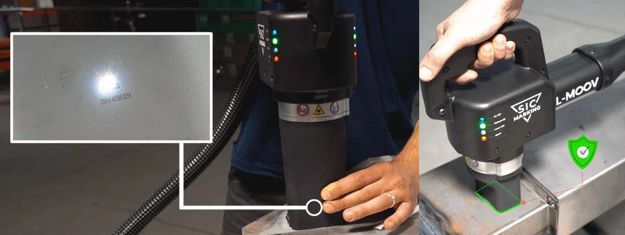It is based on an L-MOOV 30W equipped with a 60 x 25 mm marking head as well as a defocused head dedicated to stainless steel, providing the ability to adapt marking to different materials and required contrast levels.
