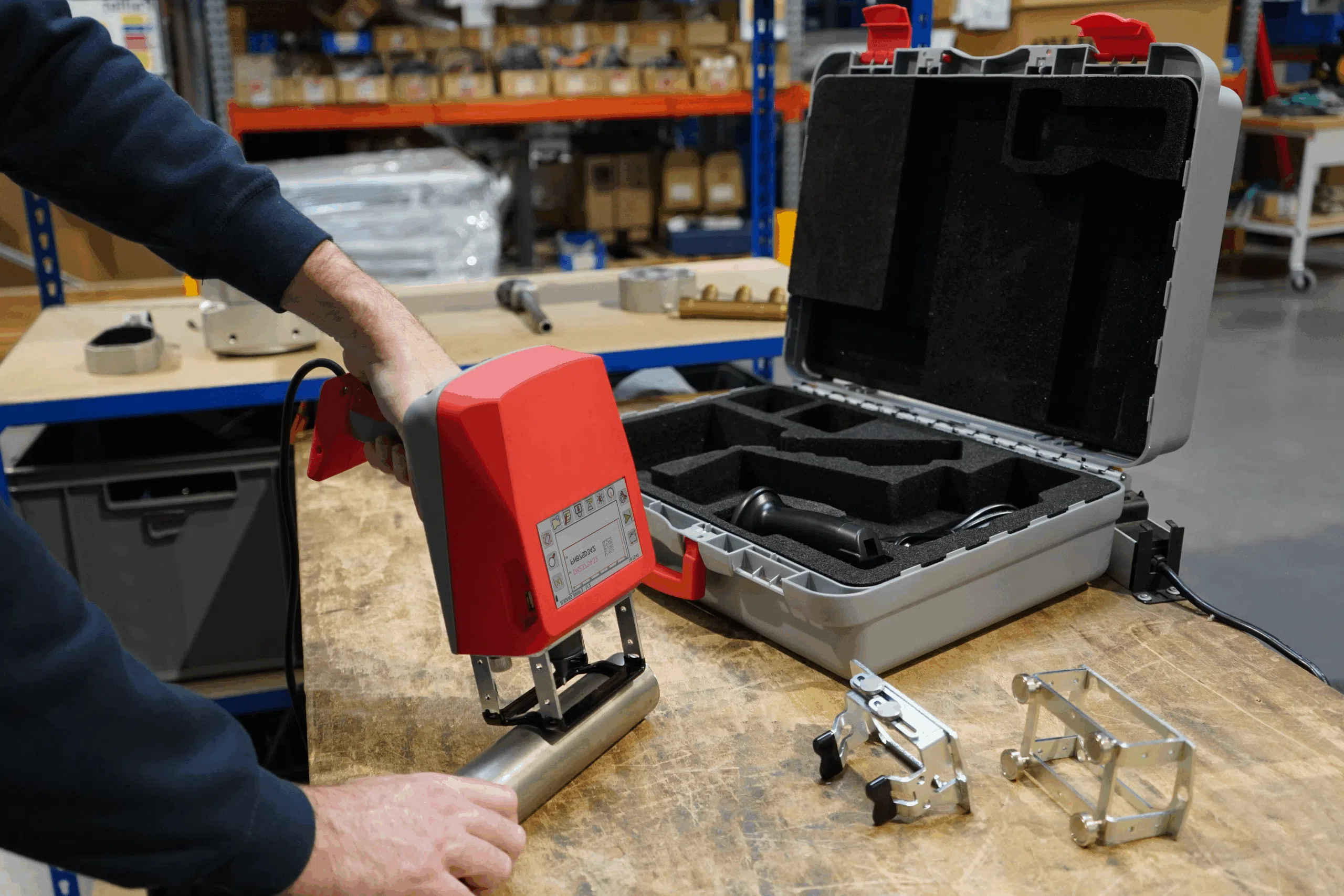 This dot peen marking marking gun has three interchangeable front faces that can be changed without tools, adapting to all industrial environments.
