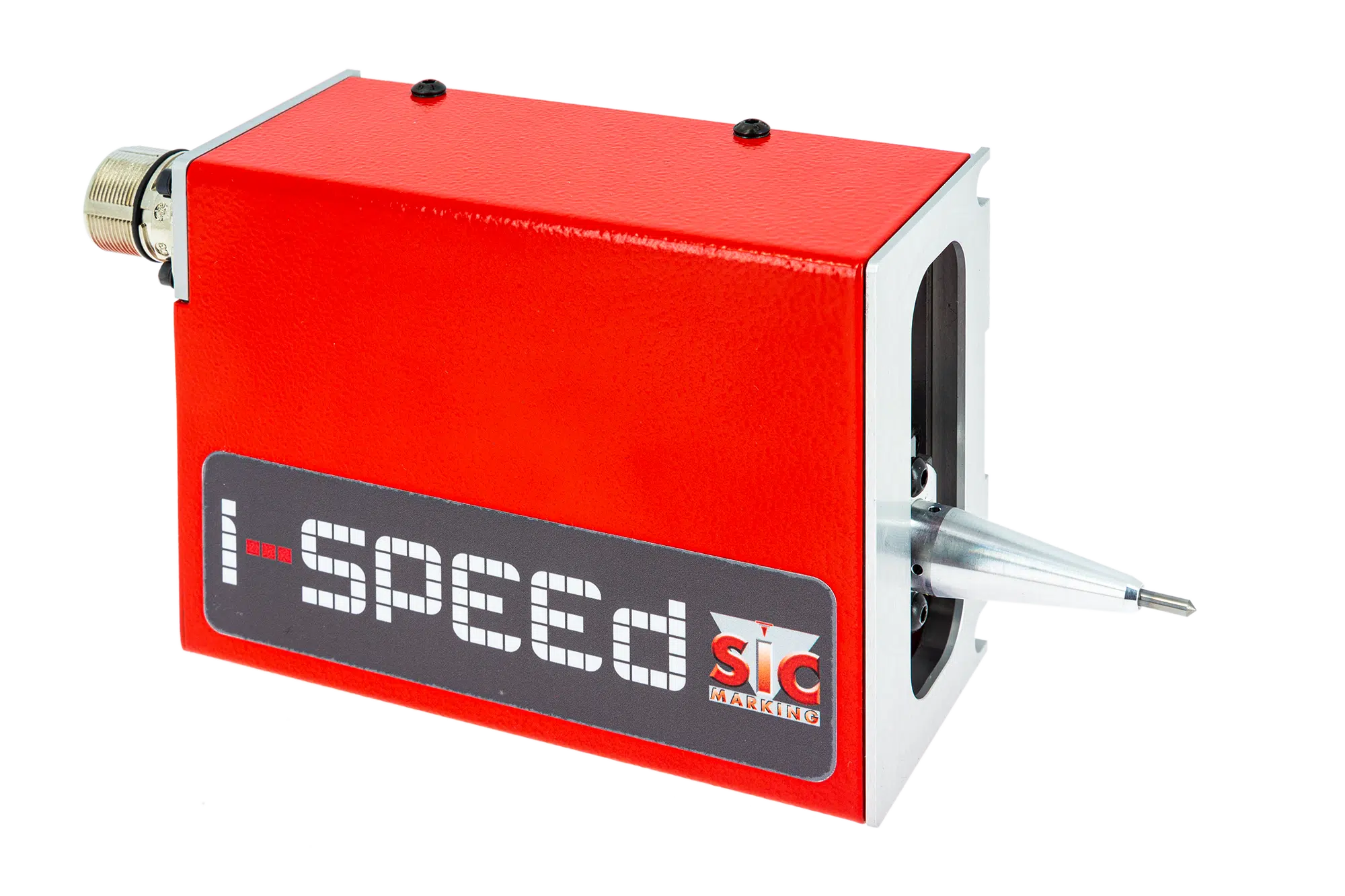 The I-SPEED is a PNEUMATIC DOT PEEN MARKING MACHINE THAT CAN BE INTEGRATED INTO A PRODUCTION LINE.