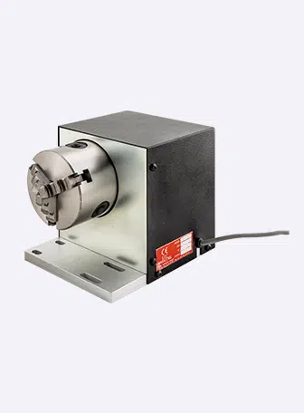 The rotary axis is specifically designed for the E1 range and a 3rd axis PCB can be installed to control the D-axis. It allows a circular part to be marked around the circumference.