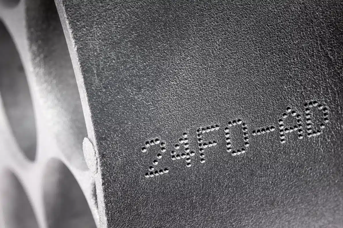 Dot peen marking technology with electromagnetic control enables parts with a variety of shapes and surface finishes to be marked: flat, concave, convex, circular, raw and machined surfaces.